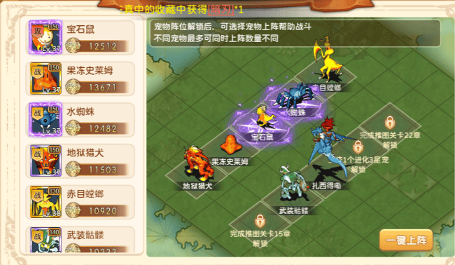 火焰鸟是AOE清场王者,“陨石雨”技能能同时攻击3个目标,刷PVE副本清小怪的时候,放一个陨石雨,基本就能清完一排,节省超多时间,不用慢慢磨。我平时刷海底神殿的小怪,就靠火焰鸟的AOE输出,快速清完小怪,集中火力打BOSS,避免被小怪围殴导致团灭。暗影狼是物理收割能手,专门捡残血怪或残血宠物补刀,而且它是野兽系,能克制龙系宠物和BOSS,打龙系副本或遇到敌方龙系输出时,伤害能额外增加20%,轻松破防,有时候BOSS残血,就是靠暗影狼的暴击,一下秒掉,避免夜长梦多。魔法人鱼是魔法系AOE,刚好弥补物理输出的不足,遇到物理免疫的小怪,魔法人鱼就能派上大用场,而且它的魔法伤害能和元素克制完美叠加,打起来伤害更炸。